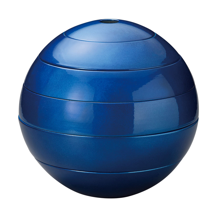 【漆石(うるし) 珠型御節五段重 (大)/瑞雲(ブルー)】 つややかな球体のお重箱。