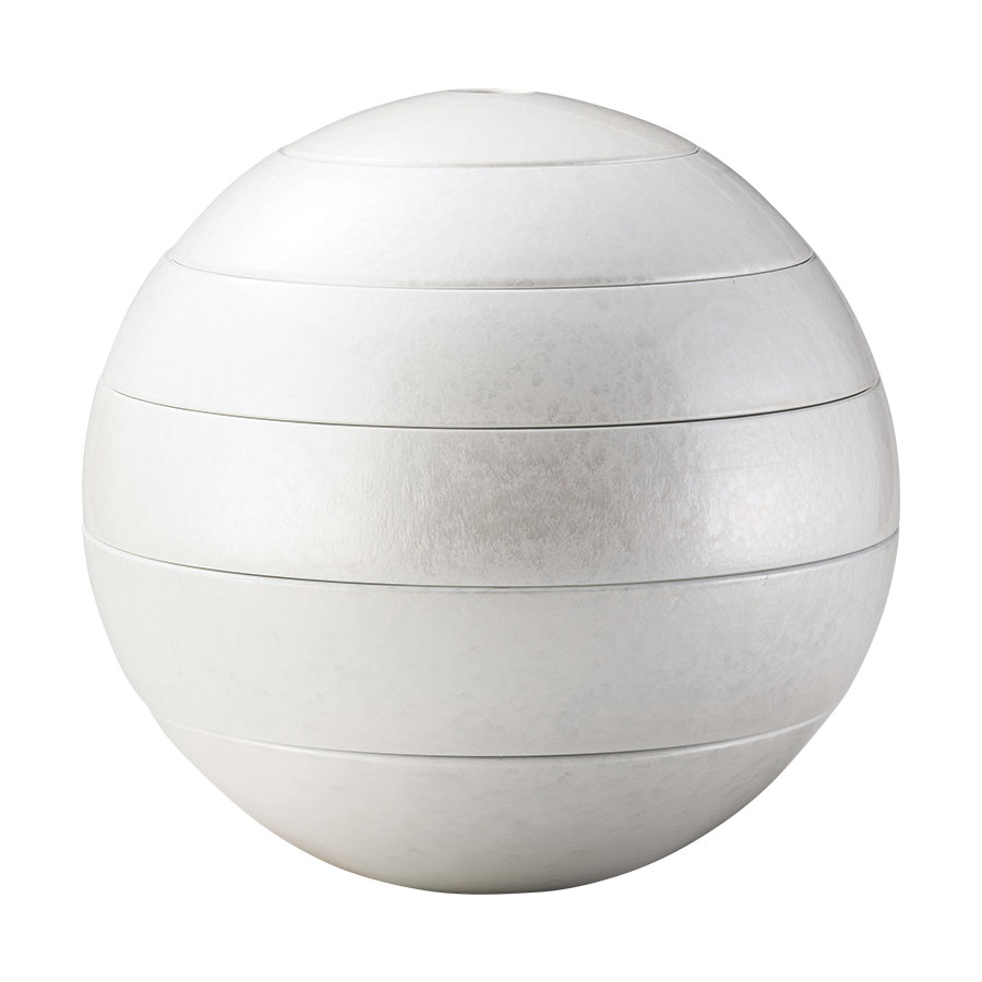【漆石(うるし) 珠型御節五段重 (大)/水面(パールホワイト)】 つややかな球体のお重箱。