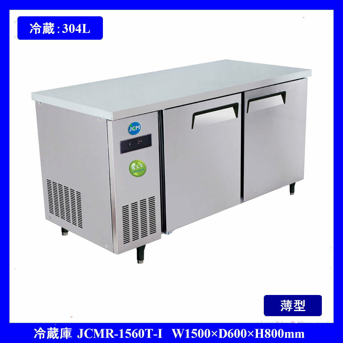 型番:JCMR-1560T-I 外形寸法:W1200×D600×H800mm 定格内容積:冷蔵:304L 冷却時消費電力:160W 年間消費電力量:440kwh/年 製品質量:83kg ◎特徴◎ ・インバーター制御で年間電気代が大幅にコストダウン ・オートクローズ扉機能で冷気を逃さない ・ノンフロン断熱材採用で環境に優しい ・取っ手は出っ張りがないフラット仕上 ・電源はどこでも使える100V仕様 ・排水設備が不要(自動霜取り後の水は自然蒸発構造のため機器本体からは霜取り水は出てきません。